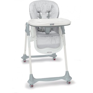 Chaise haute confortable réglable en hauteur, dossier inclinable multiposition. Tablette amovible pour une utilisation conviviale autour de la table familiale. Harnais 5 points et entrejambe rigide, 2 roues équipées d'un systeme de freinage. Mixte. Vendu a l'unité.
