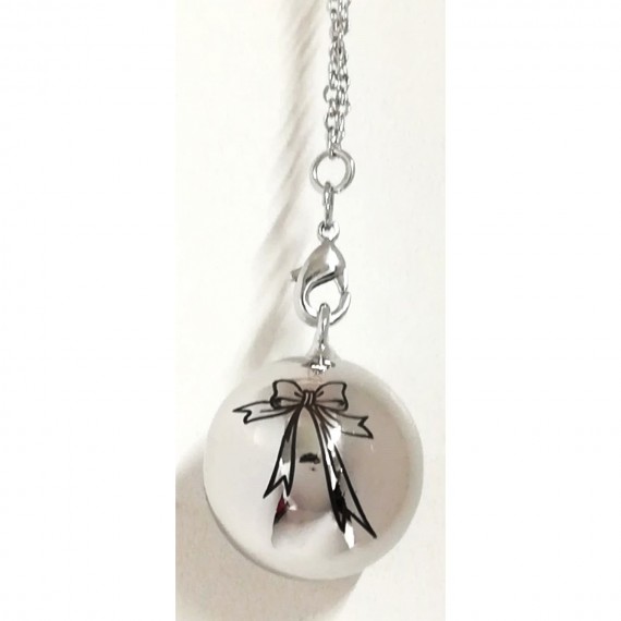Sphère Chiamangeli avec double choix de chaîne: en métal et tissu. Avec un design laser.