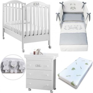 - Lit en bois de hêtre avec: kit double hauteur (première position Nanna), côtés mobiles, sommier à lattes en hêtre massif, grand tiroir 2 compartiments, roulettes pivotantes dont 2 avec frein.