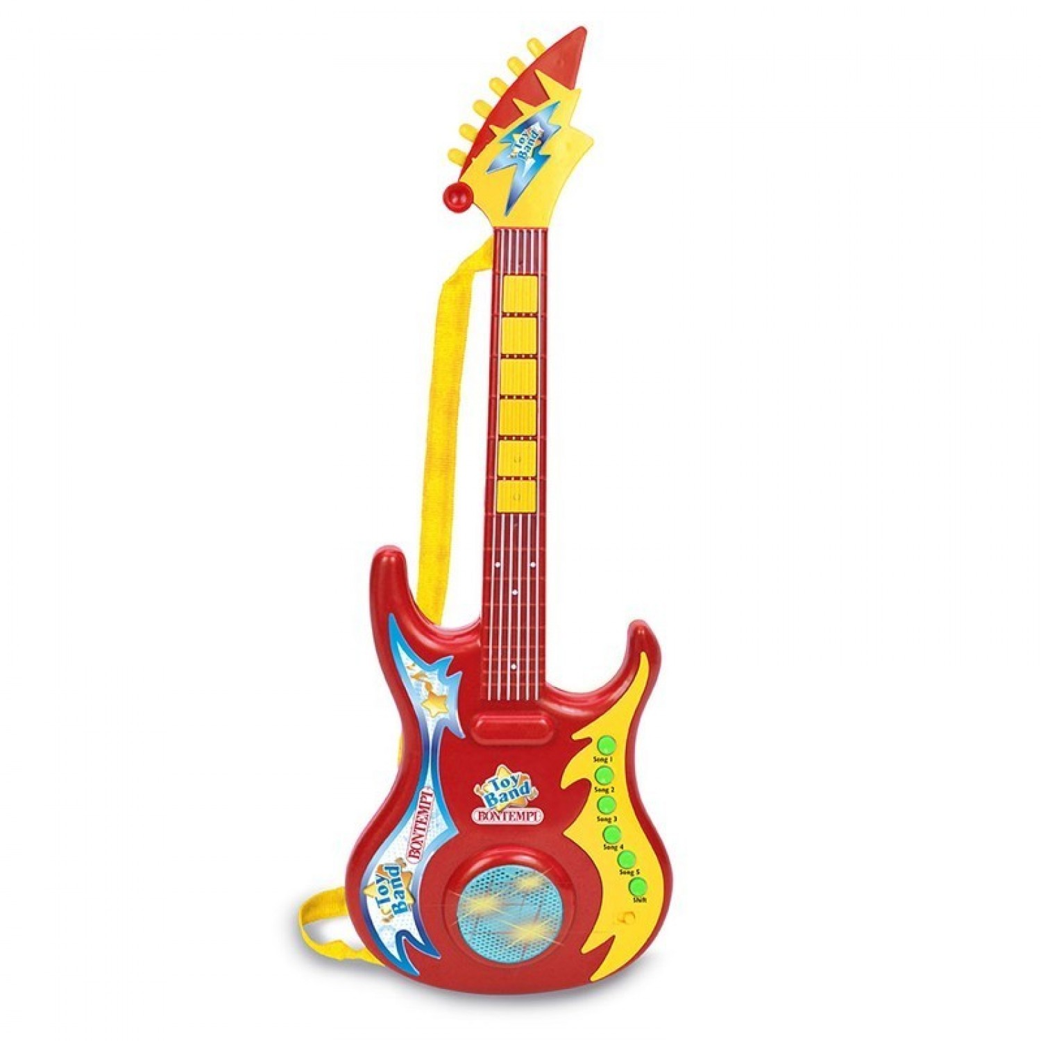 Guitare rock électronique • 6 chansons • 6 bases rock • 6 mélodies dans n'importe quel jeu de touches • Piste d'accompagnement dans 6 tons différents • Effets lumineux • Bandoulière