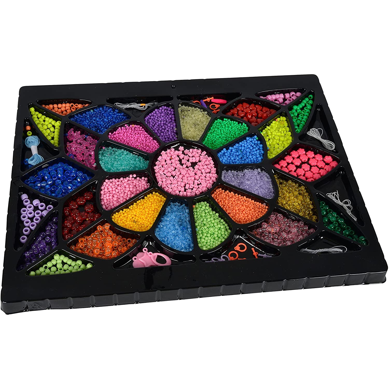 Ensemble Art & Fun de 10 000 perles de nombreuses couleurs et formes différentes, pour créer vos bijoux avec votre imagination et votre goût. 5 ans et plus.