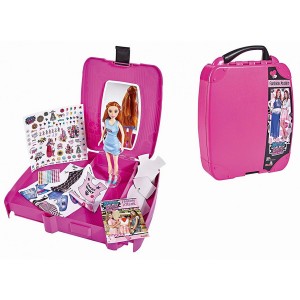 Une mallette contenant un véritable atelier de mode et une poupée de mode Maggie. 2 tissus de style Maggie & Bianca. 3 modèles de style Maggie & Bianca. Autocollants et gemmes pour personnaliser les vêtements et un miroir intérieur. Un livre complet pour devenir un expert de la mode!