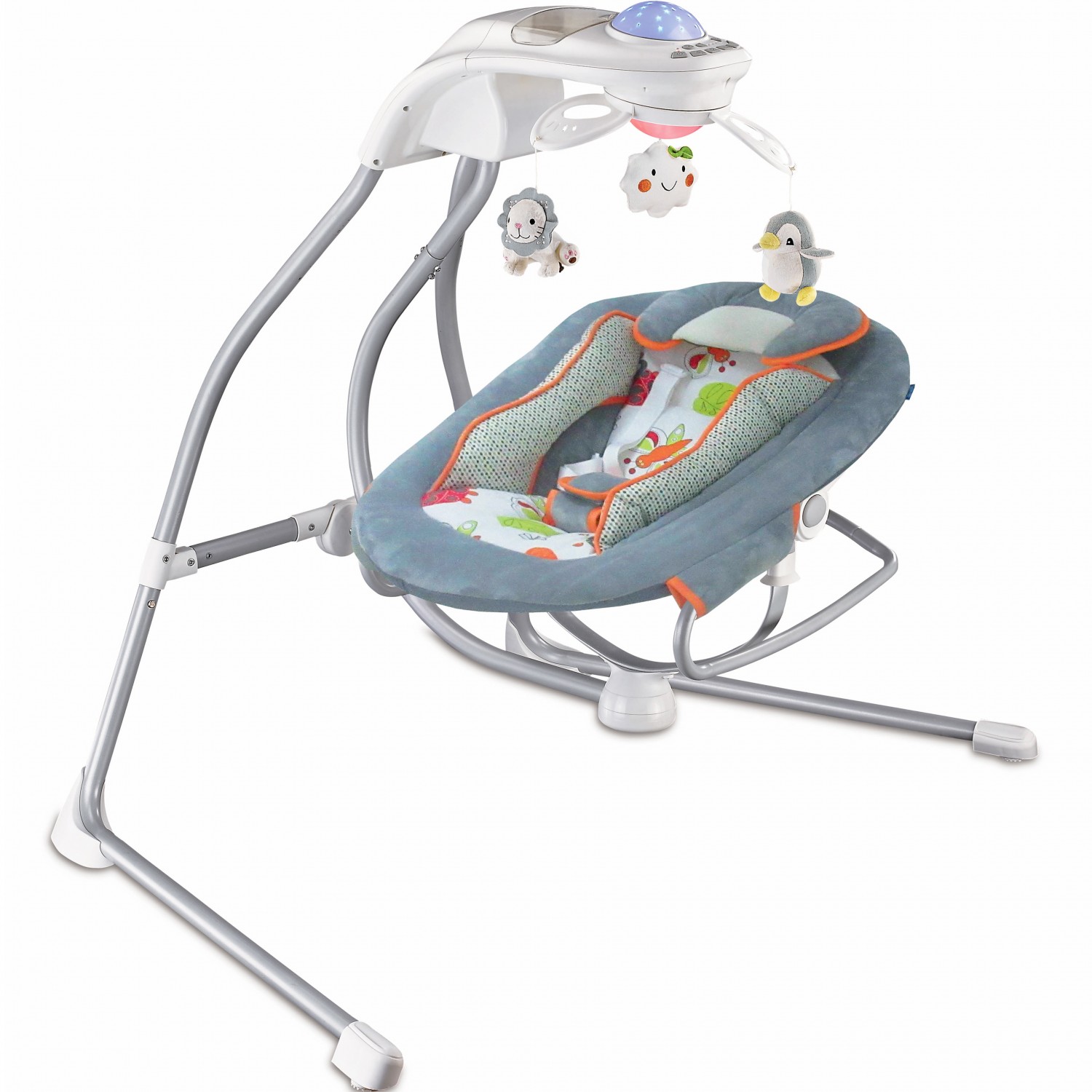 La balançoire convient aux enfants jusqu'à 9 kg. Vous pouvez choisir la position la plus confortable grâce au dossier réglable. L'enfant est en sécurité grâce aux ceintures. Le jouet mobile attire l'attention de l'enfant. Des mélodies agréables amélioreront le plaisir ou aideront le bébé à s'endormir. Utilisez le réglage de la vitesse pour choisir l'option qui convient le mieux à votre bébé. Le couvercle est facilement amovible et vous aide à garder la balançoire propre. Nettoyez avec un chiffon humide.